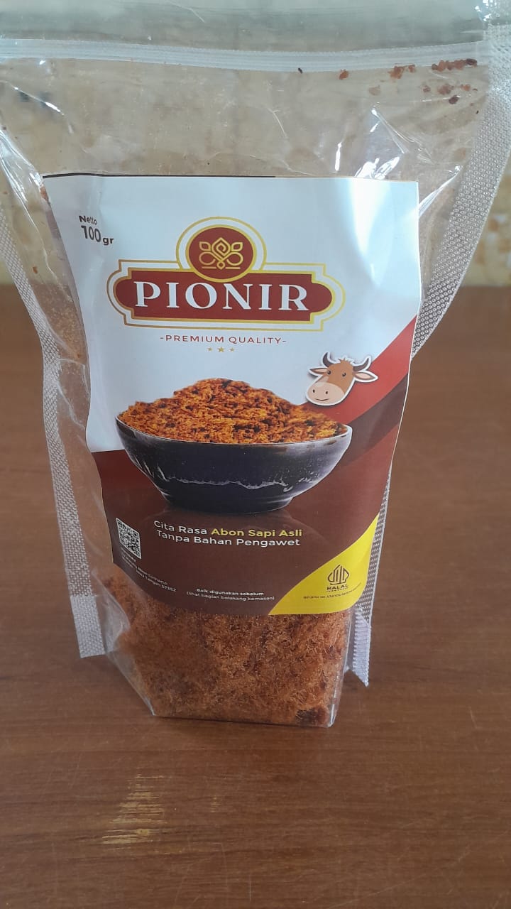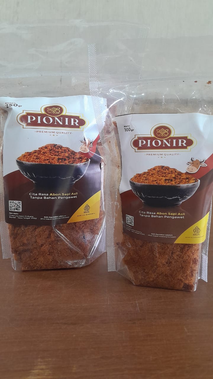 Abon PIONIR adalah abon pilihan dengan rasa gurih khas dan tekstur yang lembut, cocok dijadikan lauk praktis untuk keluarga. Dibuat dari bahan berkualitas dan bumbu rempah yang pas, Abon PIONIR menghadirkan cita rasa lezat, nyaman di lidah, dan tidak enek, sehingga disukai dari anak-anak hingga orang dewasa.