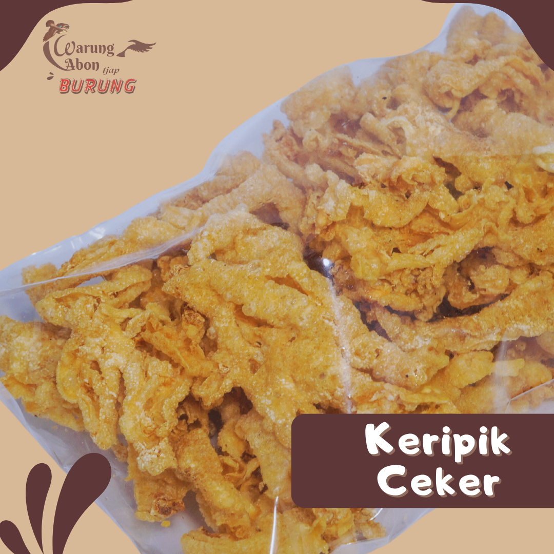 Keripik Ceker adalah camilan khas Nusantara yang dibuat dari ceker ayam pilihan yang dibersihkan, direbus, dibumbui, lalu digoreng hingga menjadi keripik extra renyah.