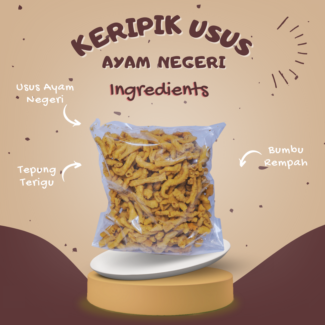 Keripik Usus Ayam Negeri hadir dengan tekstur super renyah dan rasa gurih berbumbu khas Indonesia.